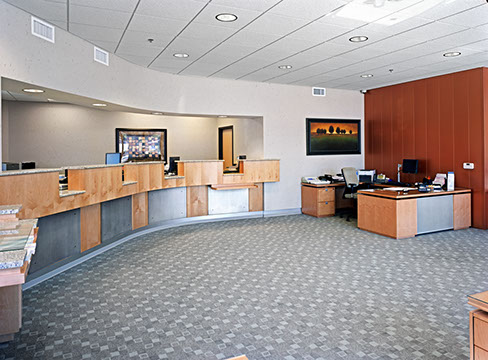 Teller Counter inside American Bank of Texas in Austin, TX.