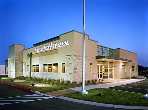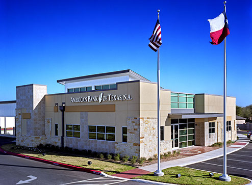 Front Entrance of American Bank of Texas in Lakeway, TX.