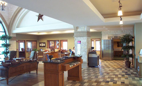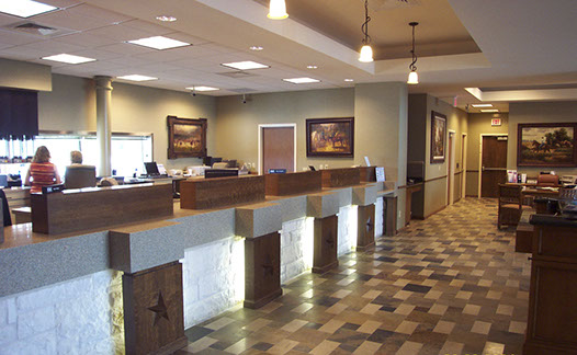 Teller counter inside American Bank of Texas in Lakeway, TX.